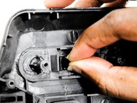 Squeeze the wings of the On/Off switch from the inside of the front panel to detach it from its slot in the panel.