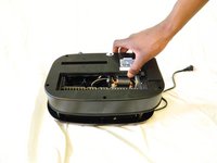 Remove the two 10mm PH1 screws holding the small black panel in place.