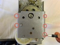 Remove the five 8mm PH2 screws from the bracket holding the gears in place.