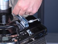 Lift the top of the latch securing the handle assembly to the sander and push it back against the sander.