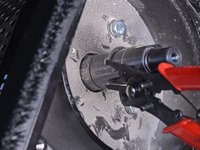 Using snap ring pliers, pry the snap ring open and slide it off of the motor shaft.