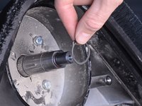 Use a flathead screwdriver to pry off and remove the rubber plug in the center of the sanding disc.
