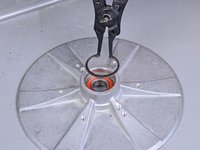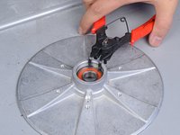 Use a pair of snap ring pliers to compress the retaining ring inside the driver and remove it from the sanding disc.