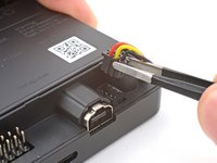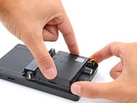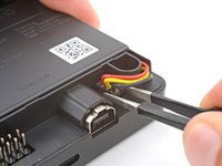 Note: Removing the battery from its recess isn't a required step, but it makes accessing the board and its cable easier.