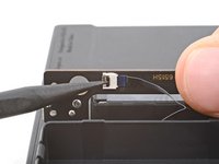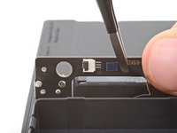 Use the tip of a spudger or a clean fingernail to flip up the hinged locking flap on the board cable ZIF connector to the bottom left of the cartridge reader.