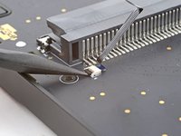 Use blunt nose tweezers to pull the battery connector out of its socket on the bottom right corner of your device.
