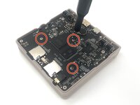 Use a Phillips #00 screwdriver to remove the three 5 mm screws from the motherboard.