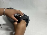 Gently remove the handle from the device by clicking off the handles from the sides and then pulling it off.