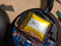 • Image shows right headphone, battery is in left.