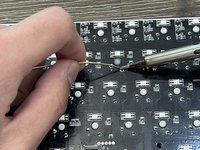Resolder the switchback onto the PCB by carefully heating the metal rings with the soldering iron, and then applying the solder wire onto the heated surface, keeping the iron in place.