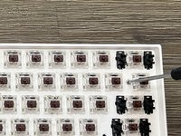 With the screwdriver, carefully pry the keyboard plate out of the case from the spacebar gap located at the bottom of the plate.