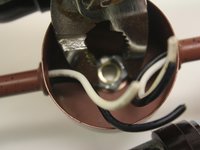 When the canopy is removed from the lamp, lift the broken support off. The wires should now be accessible from the top.