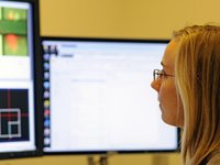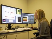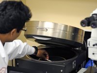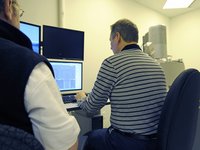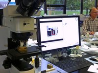 • Process and development technicians examine results after preparing the A6 for processing. Interim views through optical microscopes provide necessary feedback to the technicians to fine-tune adjustments in the subsequent processing to maximize results.