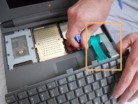 Lift the white ribbon clamps securing the keyboard ribbon cables to the motherboard. You can do this using a plastic opening tool.