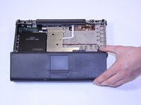Gently lift up the laptop's front-most panel and slowly raise the trackpad from the logic board.