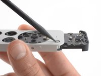Use the probe to pry up the mute button and unhinge the remaining plastic clips.