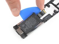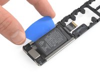 Insert an opening pick on either side of the battery and pry up to lift it away from its recess.