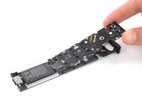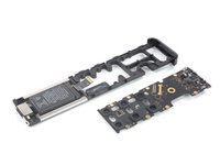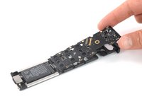 Lift the mainboard up and away from the battery to remove it.