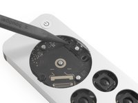 Use the iFlex to create a gap by prying the circular clickpad upwards.
