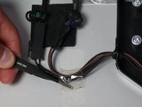 • For the next connector, which is right next to the previous wire, there is a piece of tape attached to a metal bar.
