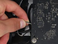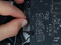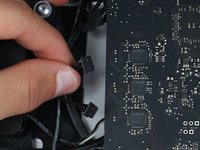 For the connector on the other side of the logic board, grab the connector from underneath and carefully pull it from the board.