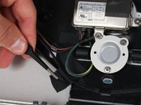 Continue following the wire and unhook it from the two built in hooks in the casing.