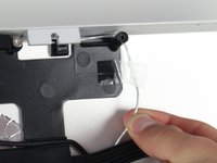 The webcam and microphone are located at the top of the device. First, follow the white microphone wire down to its connector in the logic board.