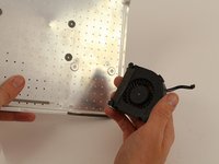 • The fan affixed to the back plate is connected to the logic board. A small wire must be detached to fully remove the back plate.
