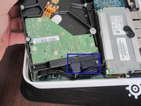 Lift the HDD out of the device and disconnect the two SATA cables from the HDD.