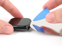 Slide the opening pick around the corner and along the long edge on the opposite side of the watch crown to slice the display adhesive.