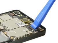 Insert the flat side of a spudger between the mainboard shield and the frame of the phone.