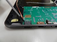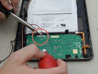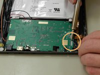 Using a Philips #00 screwdriver, unscrew the 3 screws that connects the motherboard to the tablet.