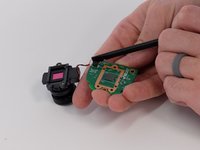 Use a spudger to carefully push on each side of the white cable connector to remove it from the socket and separate the camera lens from the board.