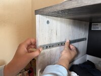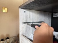 • Hold up the new internal railing against the cabinet wall and screw it in using the same screws and by twisting the screwdriver clockwise.