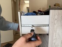 • Screw the drawer slide back onto the drawer by turning the screwdriver clockwise.