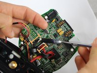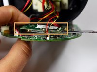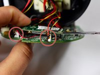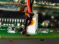 Sever the indicated adhesive connections to the motherboard allowing the wired connections to be removed.