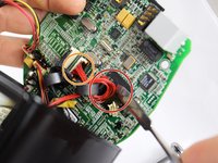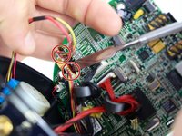 Remove the last two wired connections to the motherboard by severing the indicated connections.