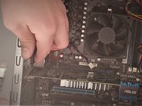 Remove the 3-pin fan connector from the 4-pin fan header on the motherboard by lightly pulling on the white plastic connector.