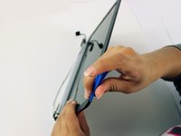 Use a blue plastic spudger to snap the LCD cover off, working the spudger around the perimeter and completely remove the cover.