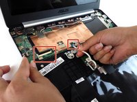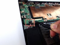 Use the tweezers to disconnect both wifi antenna cables from the motherboard.