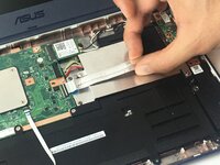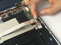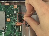 Gently disconnect the ribbon cable connecting the trackpad and the keyboard to the motherboard.