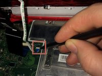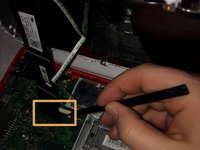 Disconnect the small ribbon cable by lifting the flap and sliding it out of the motherboard input toward the battery using a spudger.