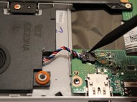 Use a spudger to pry the black wire from the audio connector, pushing the wires back toward the left speaker.