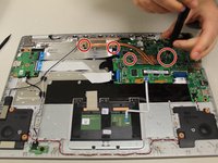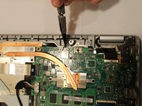 Remove the 0.4mm JIS #0 screws from the heat sink in the center of the motherboard.