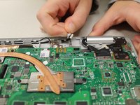 Remove the two 0.4mm JIS #00 screws at the bottom of the hinge (closest to the motherboard).