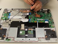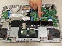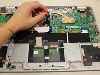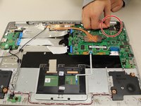 Gently pull the trackpad cable from the connector, located next to the wireless card.