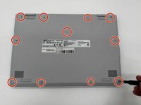 Using a Phillips #0 screwdriver, remove the eleven screws securing the bottom cover of the device.