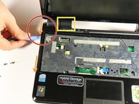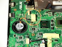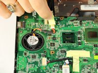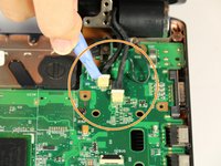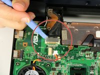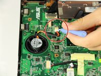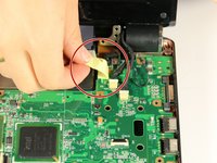 Locate the cord connected to the motherboard that is beneath the sticker that you peeled off in the previous step.