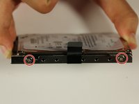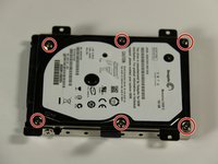 To remove the metal hard drive casing, use a T6 (star head) screwdriver head to remove six 4mm screws marked by the red circles in the picture.