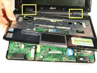 Locate the hinge points at the top of the netbook on each side. These pieces connect the screen to the netbook body.
